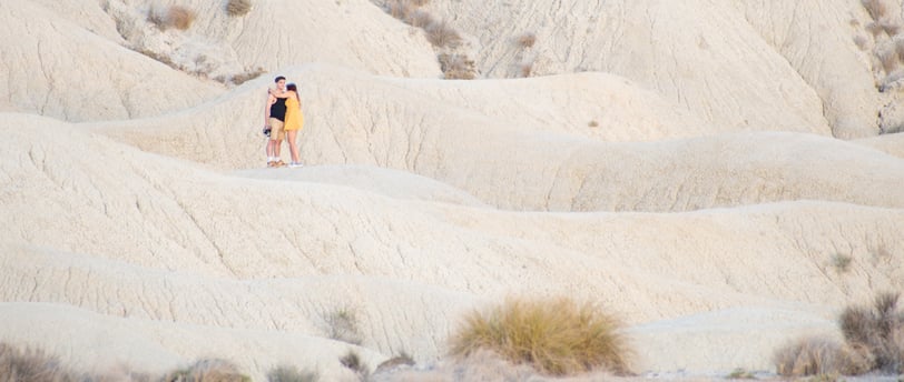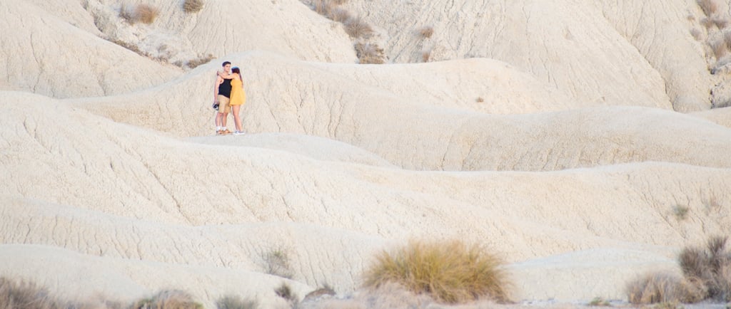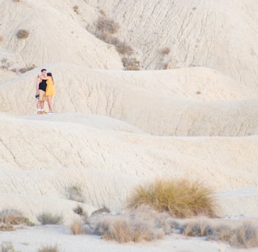 A medida que voy "calentando" observo que el lugar también me pide cambiar de posición a una colina más alta dónde poder utilizar el telex y aquí es dónde puedo sacar mejor partido al lugar. Hasta en un "desierto" encuentras situaciones que salen fuera del orden de las cosas. A lo lejos diviso una joven pareja que entre foto dan señales de su complicidad, inmortalizada dentro de este marco al instante.